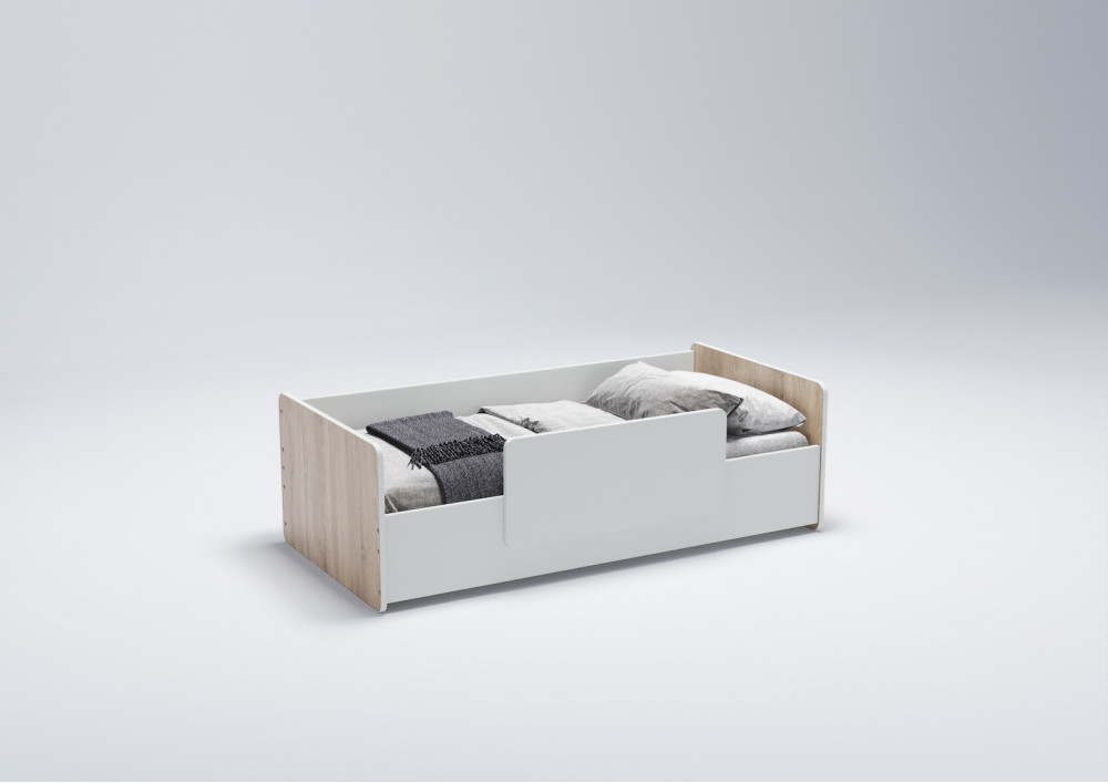 2.    Защита от травм: Кровать не имеет острых углов и обработана мягким противоударным кантом, что предотвращает возможные травмы и делает использование кровати безопасным для детей.