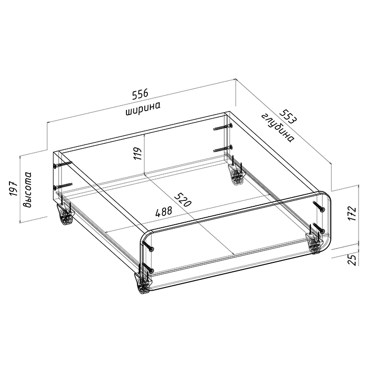 Длина/Ширина/Высота (мм) 556 × 553 × 197